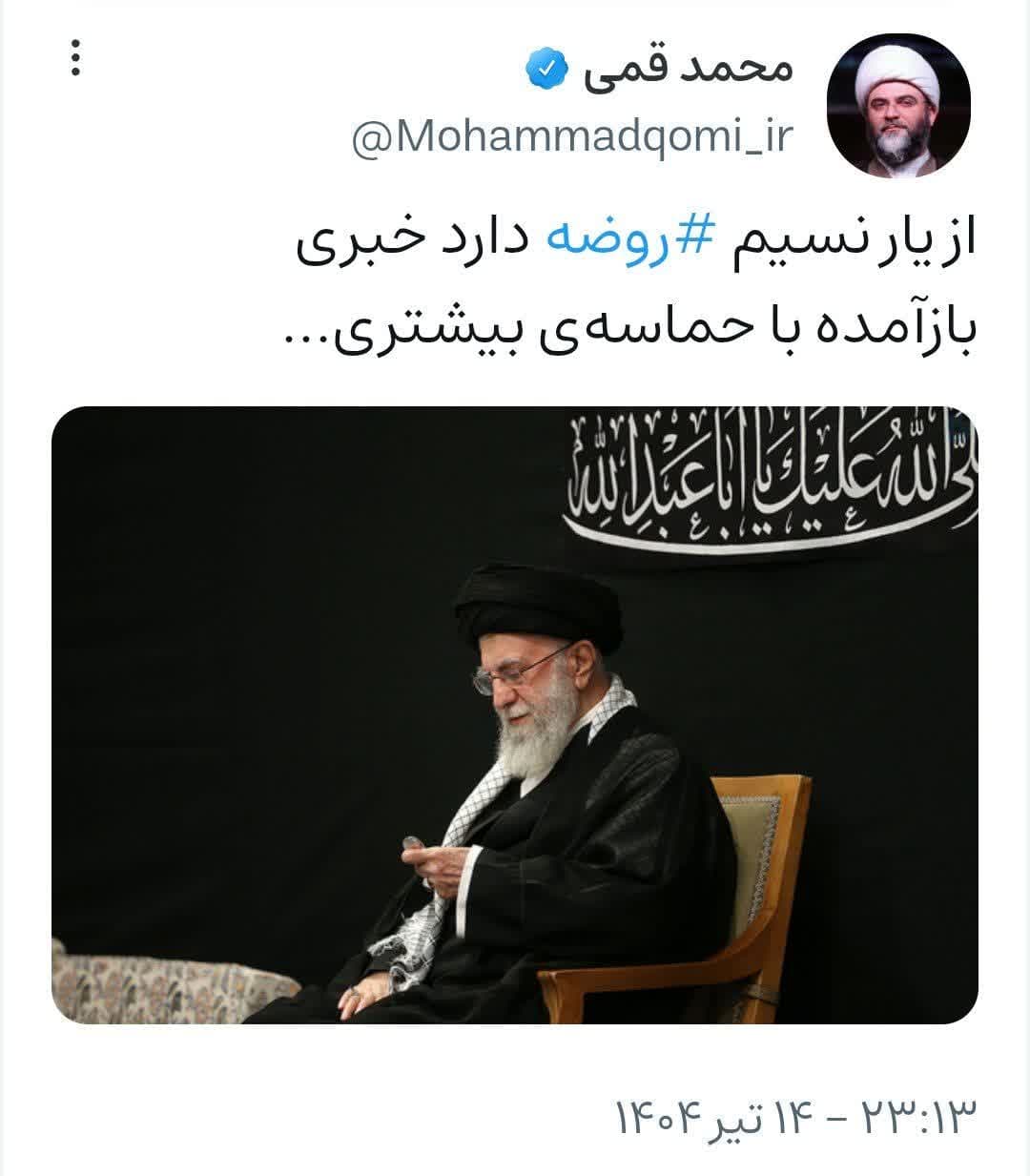 ۱۴ تیر | حجتالاسلام قمی در صفحه شخصی خود نوشت؛