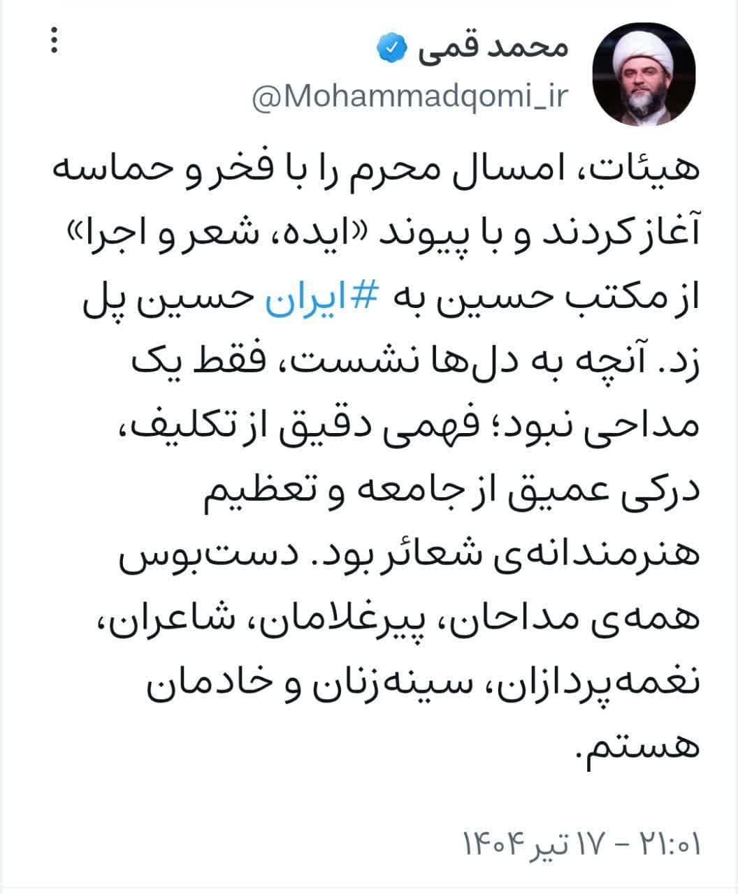 ۱۷ تیر | حجت‌الاسلام قمی در صفحه شخصی خود نوشت؛