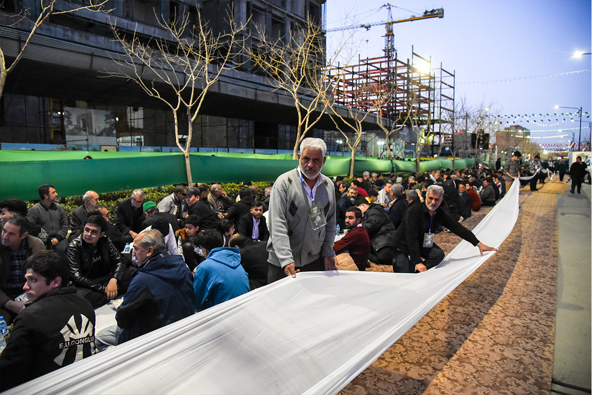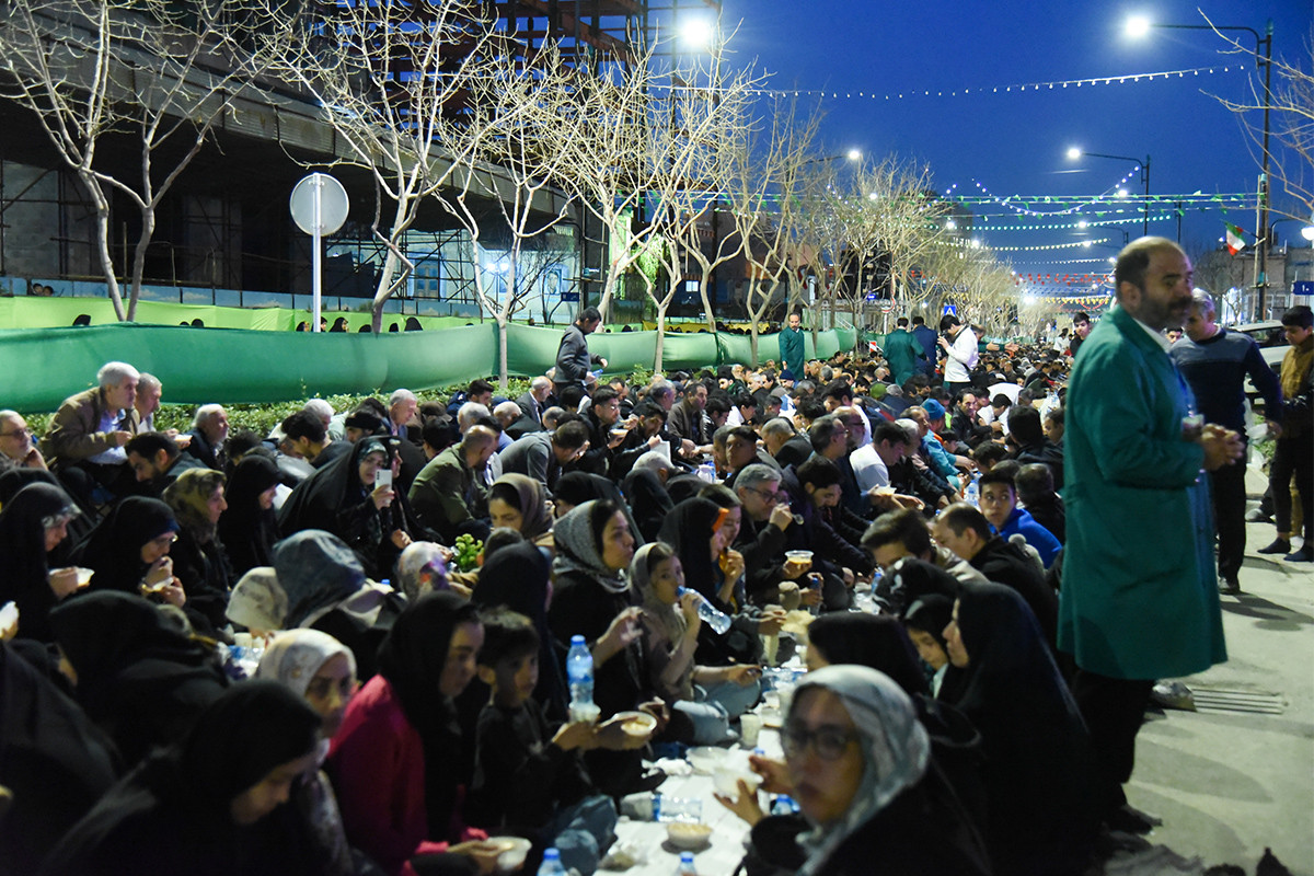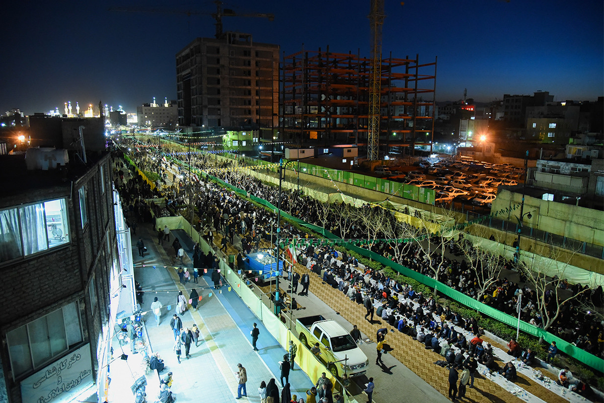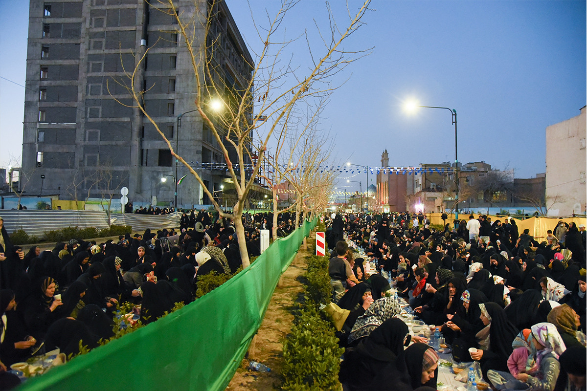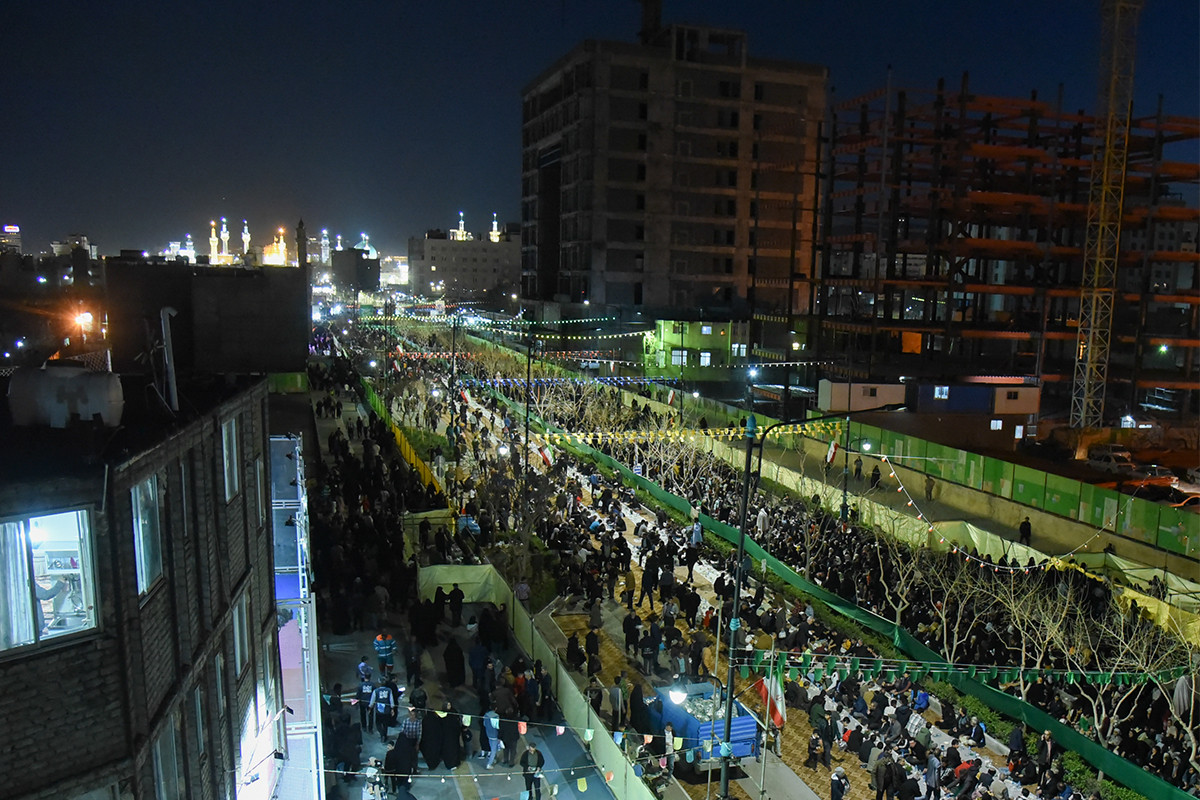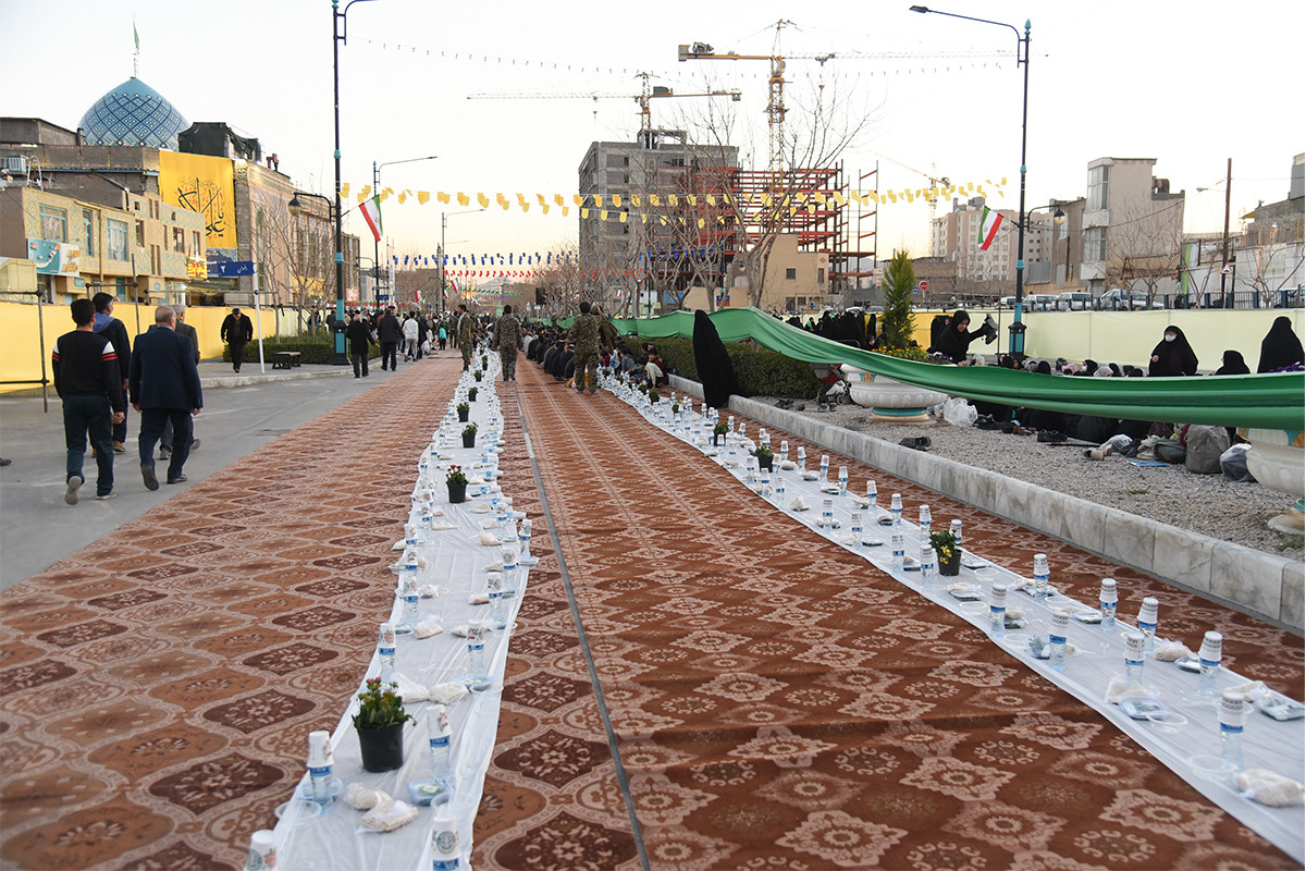 بزرگترین سفره افطار جهان اسلام، عصر شنبه ۲۵ اسفند ۱۴۰۳ همزمان با شب ولادت امام حسن مجتبی (ع) با پذیرایی از ۸۰ هزار روزه دار در بلوار رضوان مشهد برپا شد.