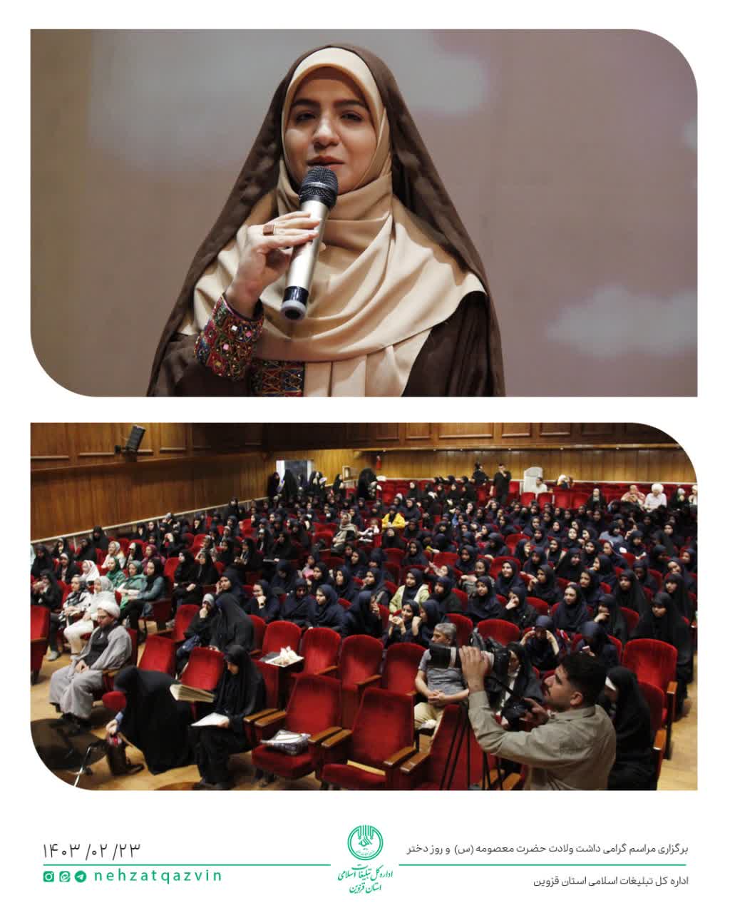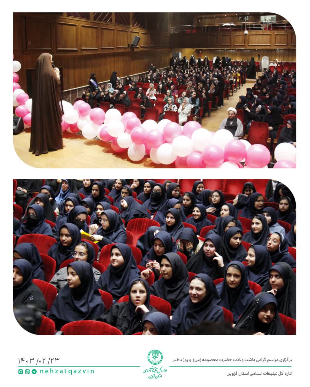 به مناسبت گرامیداشت دهه کرامت و میلاد حضرت فاطمه معصومه (سلاماللهعلیها)، جشن بزرگ روز دختر روز یکشنبه، بیست و سوم اردیبهشت ماه، ساعت ۹ صبح در سالن اجتماعات اداره کل تبلیغات اسلامی استان قزوین برگزار شد.