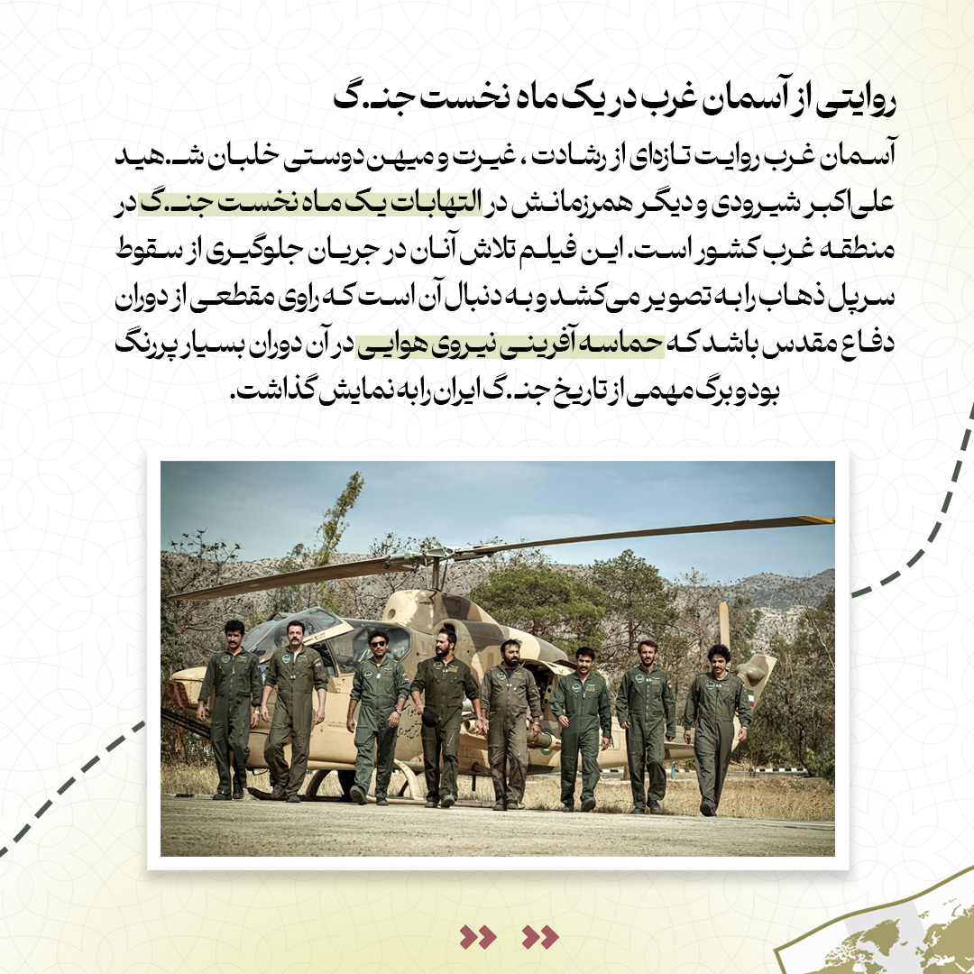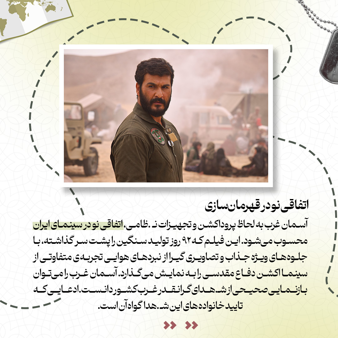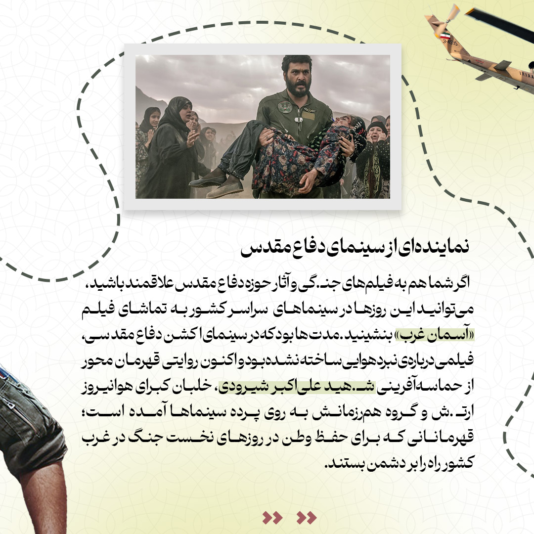 آسمان غرب که این روزها میزبان مخاطبان خود در سینماهای سراسر کشور است، روایت تازهای از رشادتهای خلبان شهید علیاکبر شیرودی را به تصویر میکشد.