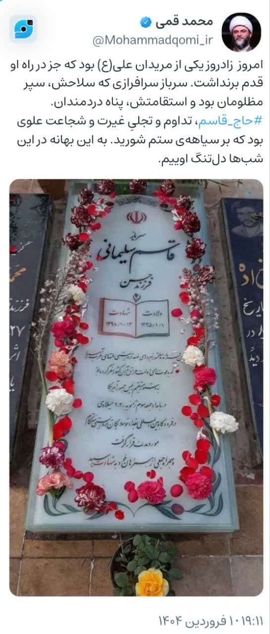 ۱ فروردین | حجتالاسلام قمی در صفحه شخصی خود نوشت؛