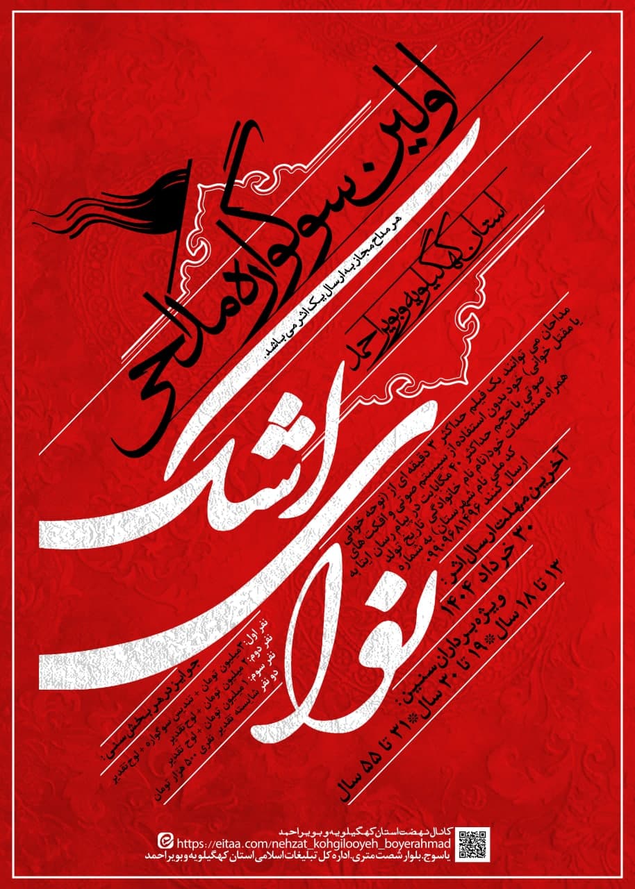 این سوگواره در سه رده سنی ۱۳ تا ۱۸ سال، ۱۹ تا ۳۰ سال و ۳۱ تا ۵۵ سال برگزار می شود و به نفرات برگزیده جوایزه ارزنده ای اهدا خواهد شد.