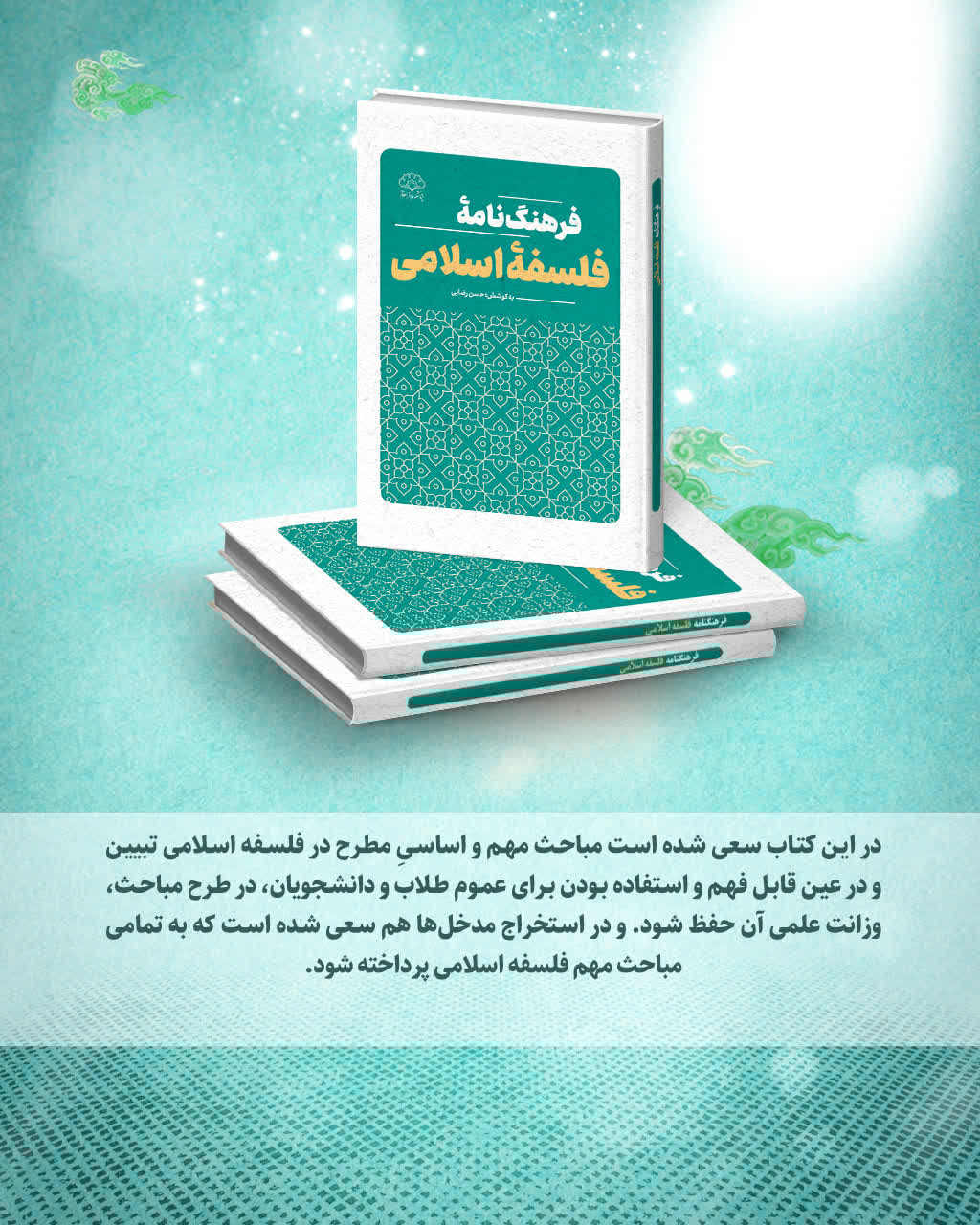 کتاب «فرهنگنامه فلسفه اسلامی» به کوشش حسن رضایی، در ۸۹۸ صفحه و با شمارگان ۱۰۰۰ نسخه منتشر شده است. این کتاب شامل نزدیک به ۳۰۰ مدخل و موضوع اصلی فلسفه اسلامی است که به همت دانشآموختگان فلسفه و کلام نگاشته شدهاند. هدف آن تبیین مباحث مهم و اساسی فلسفه اسلامی به شیوهای قابل فهم برای طلاب و دانشجویان، با حفظ وزانت علمی، و ارائه دسترسی آسان به موضوعات مرتبط به ترتیب حروف الفبا است.