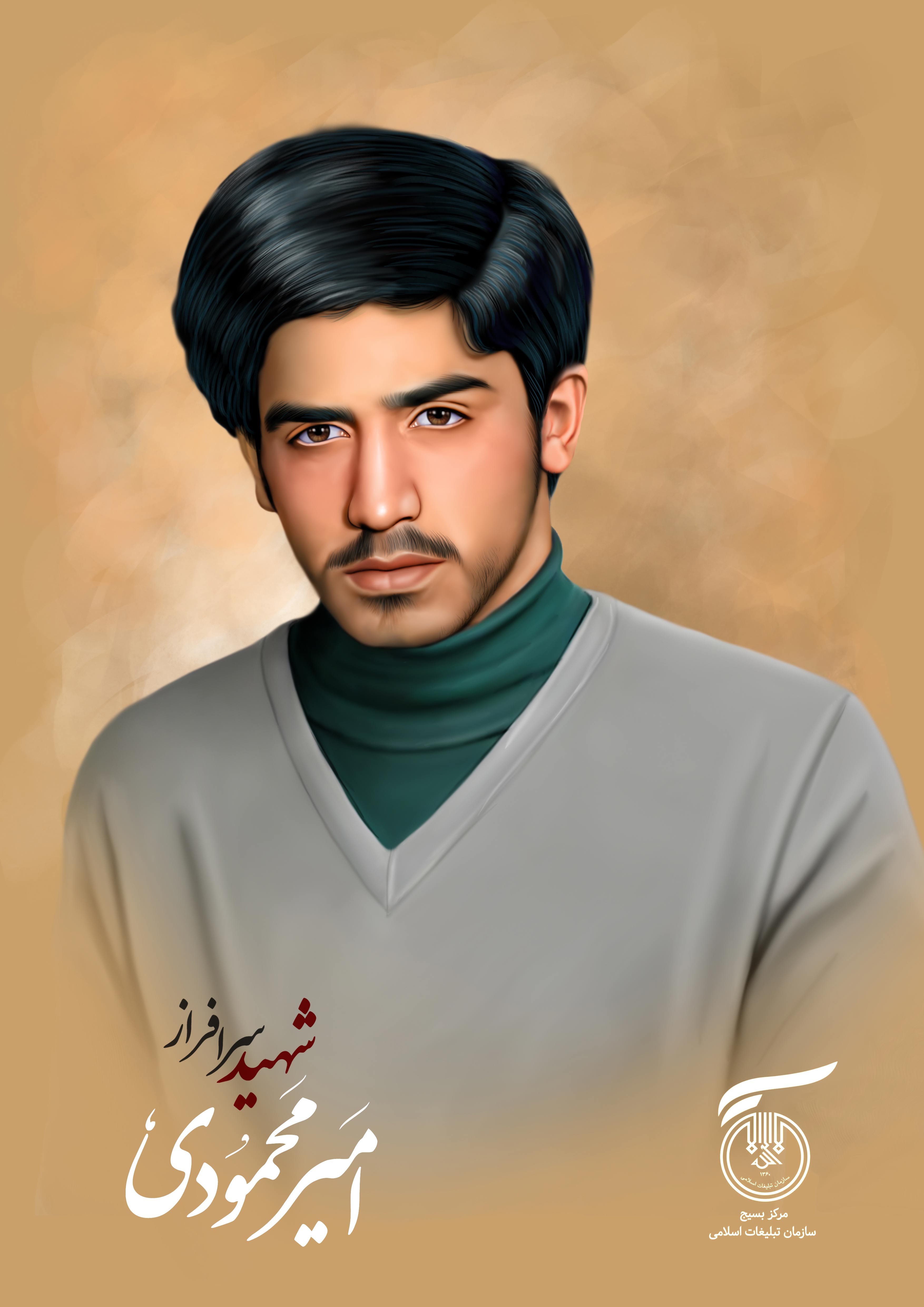 به گزارش روابط عمومی سازمان تبلیغات اسلامی،امیر یکم فروردین ۱۳۴۳ در تهران و در خانواده ای انقلابی به دنیا آمد. تنها پسر خانواده تا سوم ابتدایی بیشتر درس نخواند و خیلی زود وارد دنیای کار شد. در مبارزات قبل از انقلاب شعار نویسی روی دیوارها می کرد. مثل پدر کارگر بود و زحمت فراوان میکشید. او از تاریخ ۲۵٫ ۱۳۵۹٫۸ وارد سازمان تبلیغات اسلامی شد و در بخش كتاب واحد سمعی بصری و بخش پوستر خدمت کرد بسیج که تشکیل شد به عضویت این نهاد مردمی درآمد و از همین طریق هم در جبهه حضور یافت امیر بیست و دوم مهر ۱۳۶۱ یا سمت آرپی جی زن در منطقه عملیاتی سومار بر اثر اصابت گلوله توسط نیروهای بعثی به شهادت رسید. بعد از شهادت مادرش که به او بسیار وابسته بود از غصه دق کرد. پدر و سه خواهر او نیز هم اکنون در قید حیات نیستند. کوچه محل سکونت شهید در خیابان دهقان واقع در خیابان پیروزی تهران به نام شهید والامقام امیر محمودی است. خانه ابدی او در قطعه ۲۶ بهشت زهرای تهران قرار دارد.
